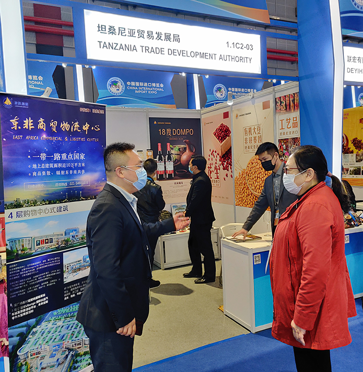 At the just concluded Fourth International Import Expo in 2021, Linghang Tanzania company established by linghang group in Tanzania was once again invited to participate in the Import Expo as a representative of Tanzania Trade Promotion Bureau. There are two booths in the exhibition, namely, the food and agricultural products exhibition area and the service trade area. Soybeans, peanuts, sesame, cashew nuts, coffee, red wine, spices, dried fruits, handicrafts, etc. are displayed in the food and agricultural products exhibition area of hall 1; One belt, one road project of linghang Tanzania company, is located in the service trade area of the 8 Pavilion: East Africa Business Logistics Center.
